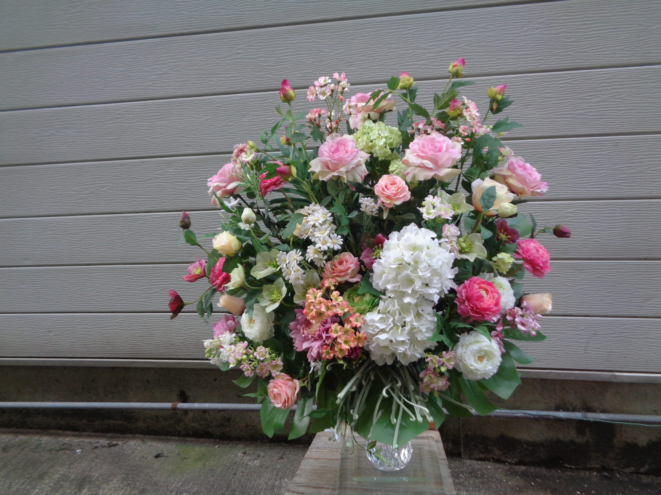 こちらはガラス花器にアレンジ1対(造花です)