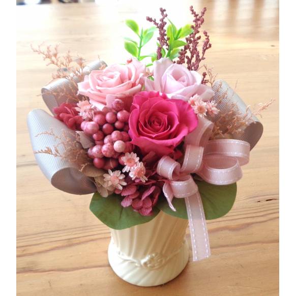 プリザ和モダン・薔薇色